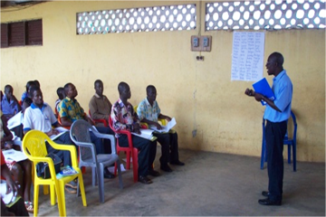 Figure 1: Mr. Obuobi instructing a reading lesson with his kindle device.